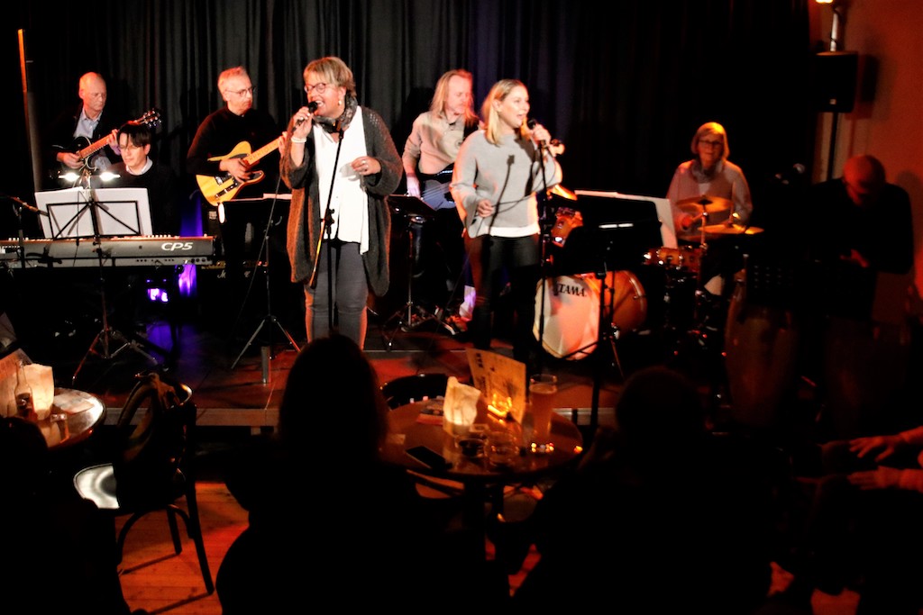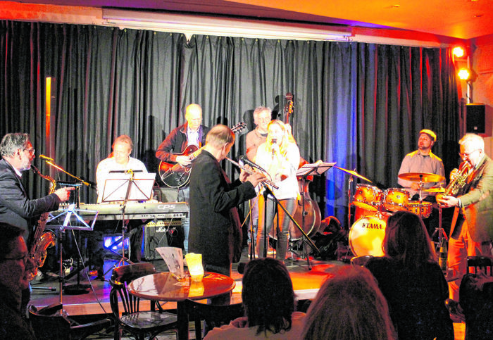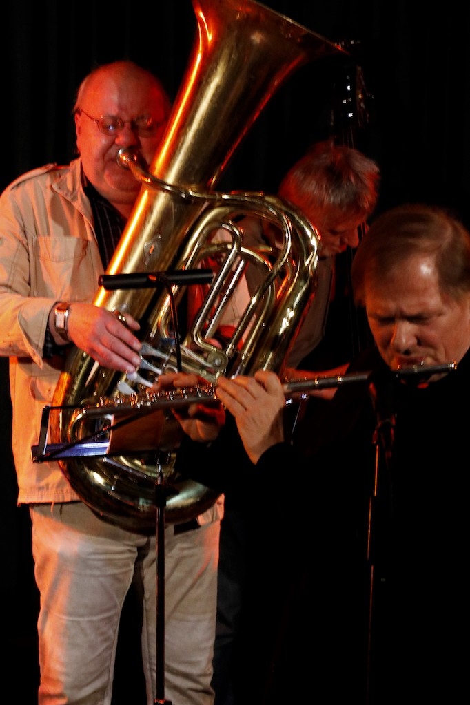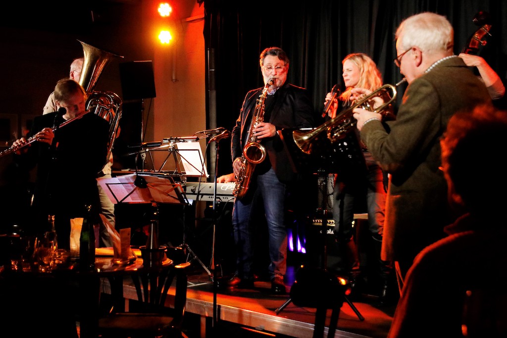 Der bunte Reigen wurde von den stets gerne von der Neuen Jazz-Initiative Celle engagierten Musikern mit Dietmar Sander an den Tasten und Gesang, Dima Mondello (Tenorsaxophon), Heinrich Römisch (Bass) und Tobias Decker (Schlagzeug) eröffnet. „Besame Mucho“, ein Klassiker, gerne gehört, doch hier in einer XXL-Variation, die immer mal wieder einen anderen Musiker in den Vordergrund treten ließ. „The Days of Wine and Roses“ von Frank Sinatra, Gesang Dietmar Sander, schloss sich an, bevor sich die Gruppe „Tonart“ aus Celle auf der Bühne formierte. Keyboard, zwei Gitarren, ein Bass, Schlagzeug, Percussion plus Mundharmonika und zwei Sängerinnen verwöhnten das Publikum mit „My Baby Just Cares for Me“ von Nina Simone aus dem Jahre 1958 oder „Perfect“ (Fairground Attraction, 1988). Drei Swingstücke, dargeboten von Erich Kollakowski an der Querflöte, zwei Balladen von der Sängerin Birgit Kuhns, einmal in englischer, die zweite in französischer Sprache. Inhaltlich mit dem Thema Erinnerungen ausgestattet und dem Titel „These Foolish Things Remind Me of You“. Es folgten drei Blues-Stücke von „Tuba-Tim“ alias Gerhard Seifert.