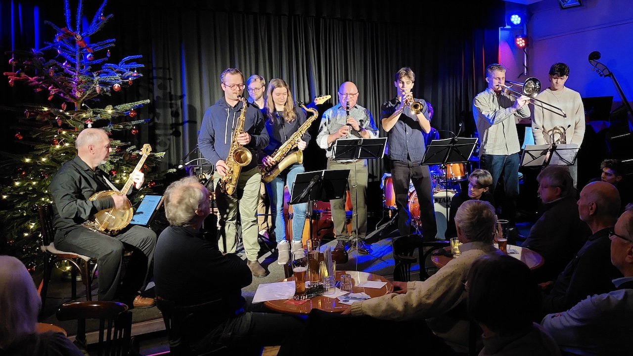 zu bieten und begeisterte das Publikum in stürmischen Wellen. Das ein oder andere Solo ließ sogar ein Anklang von Weihnachtssong erraten … dieses Heraustreten und Loslegen – das kecke, spontane Loslassen und einfach mal intuitiv Freispielen ist es, was Jazz so beflügelt und die Menschen begeistert.