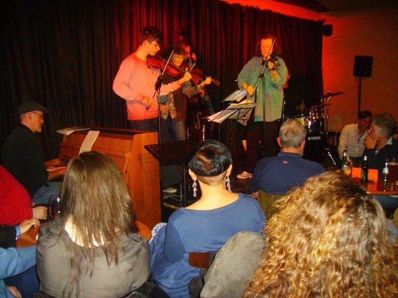 Boom,Boom,Boom - mit der fetzigen Bluesguitar von Steve Link und mit American Folk Jazz auf der flotten Elektrischen Geige von Marmalade Jane wurden auch von den fortgeschritteneren Semestern unter den Akteuren mitreißende Akzente gesetzt, bevor man sich zum mehrstimmigen Abgesang zusammentat und die Band noch einmal groß aufdrehte unter großem Beifall der Sessiongäste.(tkh)