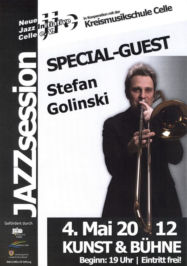 CELLE. Es war nicht unbedingt die Stunde der frühen Vögel, eher die der Nachtschwärmer, die den anfänglich spärlich besetzten Raum in Kunst&Bühne mit zunehmender Dämmerung draußen doch noch mit einem ansehnlichen Publikumszustrom füllte und darunter dann auch etliche Jazzkundige hereinspülte, die die Qualitäten des Sessiongastes Stefan Golinski richtig ein- und zu schätzen wussten, erinnert man den vorzüglichen Posaunisten doch hier noch als vormaligen Leiter der Bigband Celle (BBC).