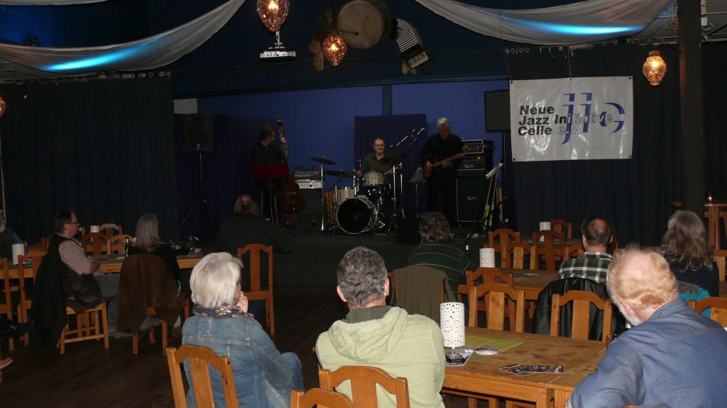 Sie begann sehr dezent, fast zurückhaltend, als wollten sie erfahren, was sie einem Jazzpublikum zumuten kann: Die Blues-Rock-Band The Blooze, mit dem Gitarristen Uli Wissmann, Larry Bartels am Bass und dem Drummer Robert Schön. Schließlich war es die Neue Jazzinitiative, die sie am vergangenen Freitag ins Braugasthaus Mühlengrund eingeladen hatte. Back to the Roots hieß es deshalb erstmal. Zurück in die 60-er Jahre ließ sie BB King und andere Größen auferstehen, feinsinnig und virtuos interpretiert, grandios solistisch und harmonisch im Zusammenspier der drei Musiker. Hervorragende Interpretationen bekannter Titel u. a. von Eric Clapton und Jimmy Hendrix folgten und bereiteten zugleich den Weg zu einem furios rockenden Finale. Mit einem hammermäßigen Drive drehten die Musiker schließlich auf, so dass auch die harte Fraktion des Blues-Rocks voll auf ihre Kosten kam. Fotos: Rolf Halm, Text: Till Sauerbrey