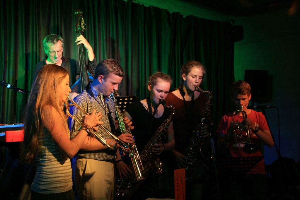 Anschließend widmeten sich die "Youngster" verstärkt einigen Standards. Hier brillierte unter anderem der Trompeter Nikolai Syzmanski bei einer sehr sanften Version von "All the things you are" oder aber dem "dreckig" dargebotenen Blues "All right, okay, you win".